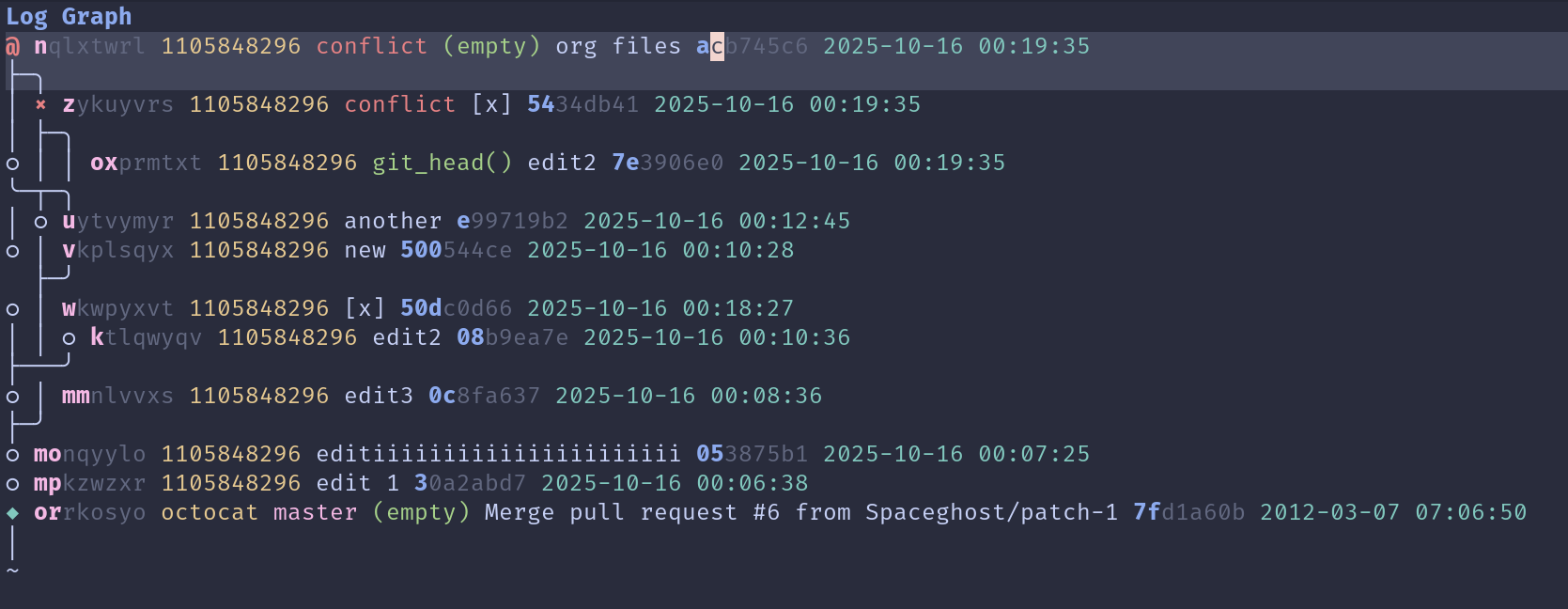 和正常的 log 不同,evolog 中 change-id 不重要,只需要显示 commit-id 即可